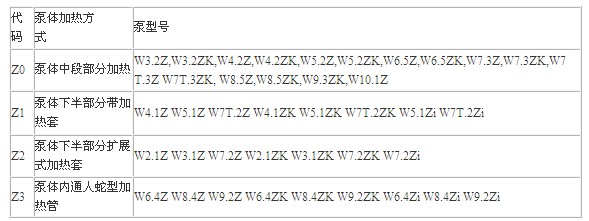 所有泵體的加熱,不同的規(guī)格采用不同的加熱方式詳見下表: