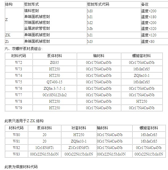 5、雙螺桿泵密封形式代碼說明: